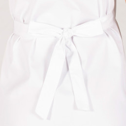 Bata de mujer con diseño cruzado sin mangas, lo que brinda libertad de movimiento y permite mantener una temperatura cómoda en cualquier entorno. El modelo semi ajustado y las pinzas en el pecho garantizan un ajuste a medida. Con cinturón trasero de cintas para personalizar el ajuste. Con un bolsillo en el pecho derecho y dos bolsillos de parche en la parte delantera. El diseño sin mangas y el ajuste personalizado permiten que esta bata sea versátil en cualquier entorno laboral, desde hospitales hasta consultorios dentales. Fabricada en un 65% sarga y 35% PES CO - 200gr/m2. Es ideal para uniformes sanitarios, limpieza, almacén, alimentación o comercio.